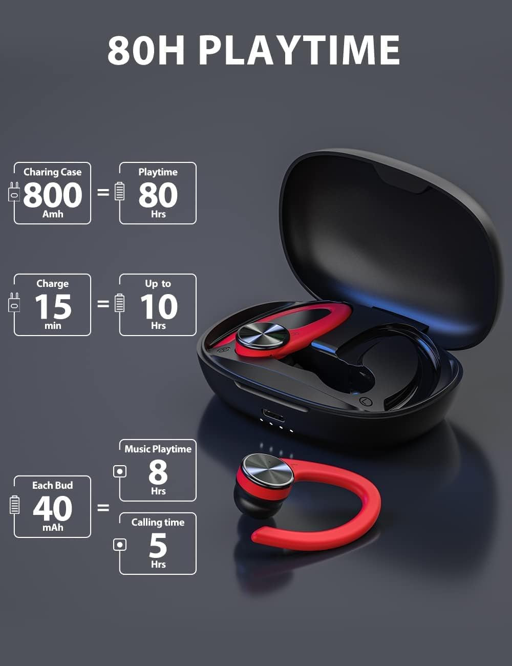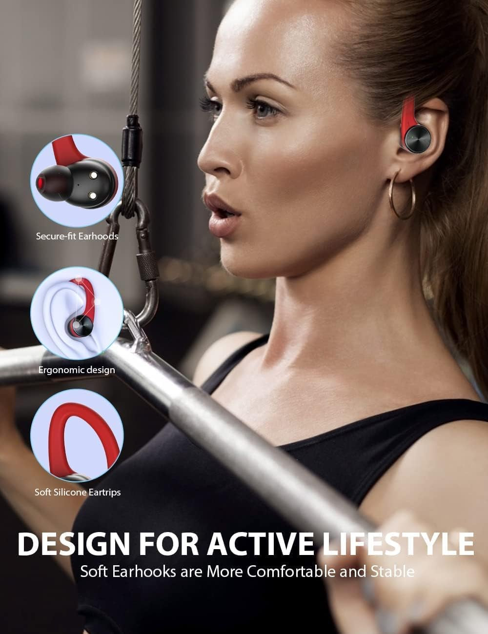 4) IPX7 waterproof: With IPX7 nano-coating, wireless earbuds provide protection against accidental splashes such as sweat/light rain/shower, etc., suitable for running, hiking, fitness, yoga, scooters and other sports but not suitable for swimming